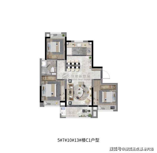 大名城映雨江南售楼处电话:400-856-9058☑️☑️建面约108㎡3房2厅2卫,做到了三开间 朝南+双阳台设计+主卧套房设计+南北通透,该户型得房率非常高。