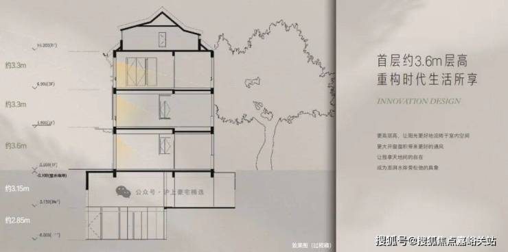 约3.6m首层层高,阔尺采光面。