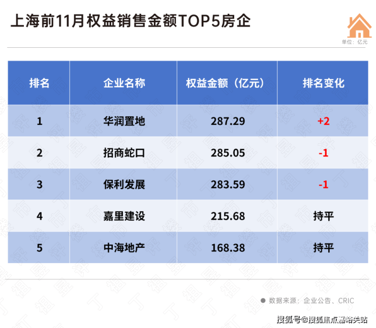 具体来看,前11月 华润置地 以287.29亿元权益销售金额暂居上海房企销售首位,前10月还在第三位的华润连升两位,一举赶超招商和保利发展。