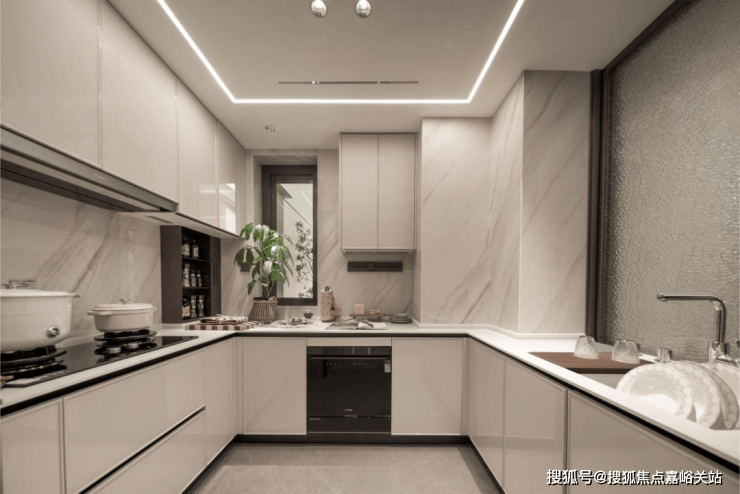比如选用方太隐藏式升降油烟机,挥手即可控制;灶具也采用了防干烧技术,精判自动关火。