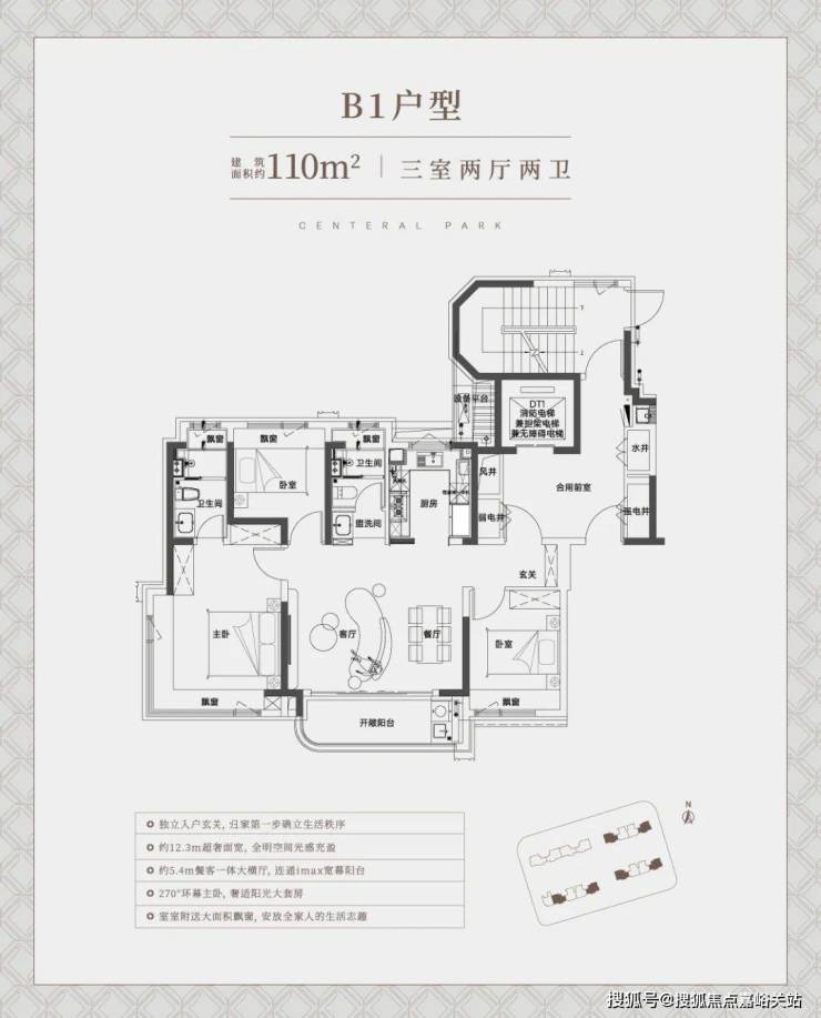 先来看建面约110㎡边套大横厅户型: