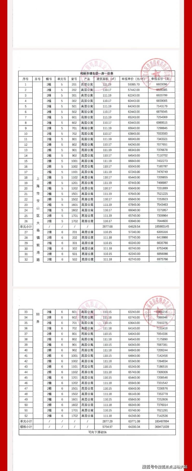 一房一价表如下: