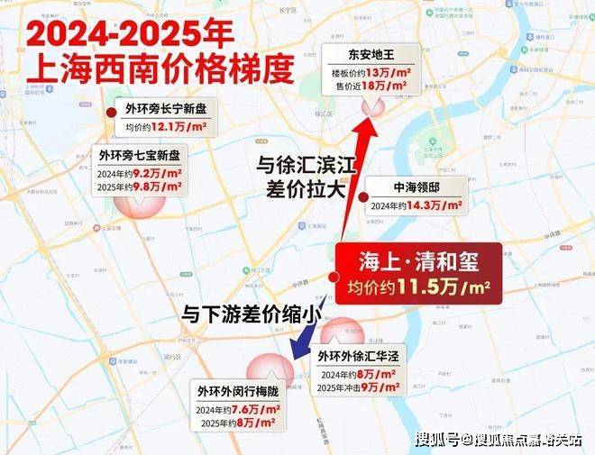 徐汇华泾:2024年约8万/㎡,2025年随着新地块即将入市,市场预判其售价将逼近9万/㎡;