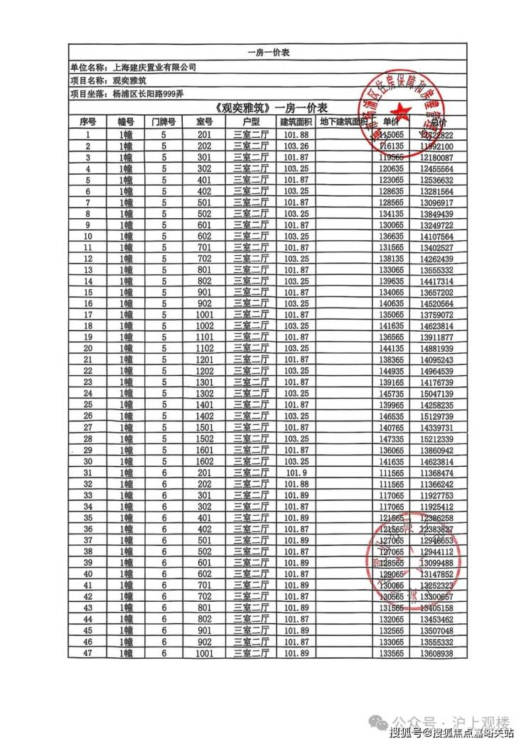 完整一房一价表如下: