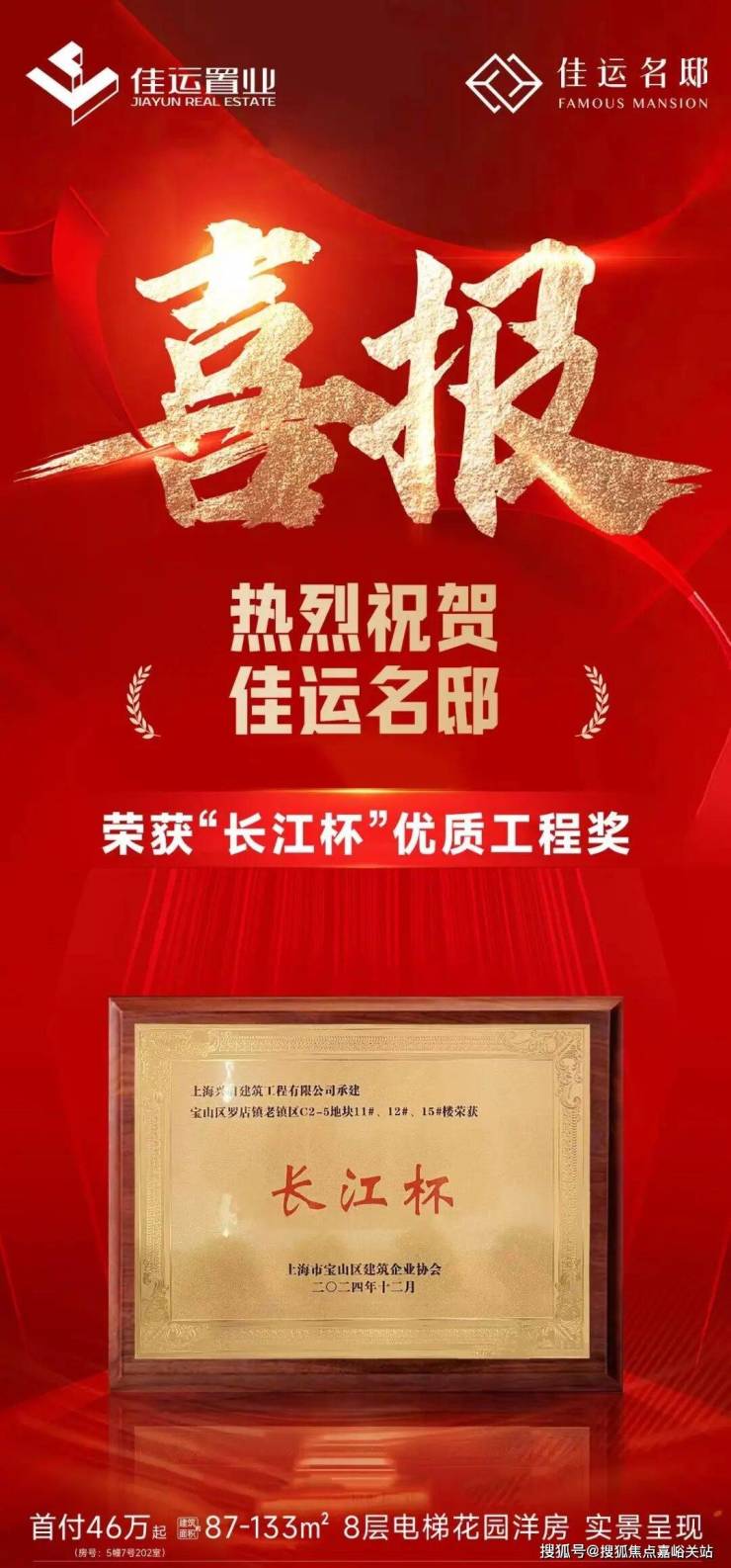 近期,佳运名邸荣获了由宝山区建筑企业协会颁发的“长江杯”优质工程,收获了来自购房者和行业人士的高度认可。💎💎佳运名邸售楼处:400-8824-198💎💎
