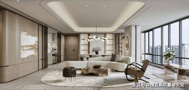 通过 “S墙+4飘窗设计”释放灵动空间,餐客厅一体化消除传统走廊造成的空间浪费。