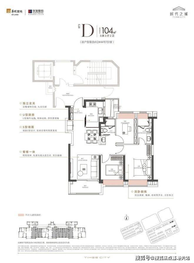 5、建面约104㎡3房户型,空间感与实用性兼备