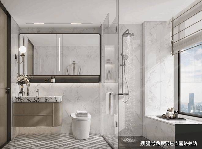 卫生间的收纳更是创新!双卫配置大容量镜柜并增设置物台提升实用性;公卫通体收纳柜,细枝末节的杂物均可一并容纳!