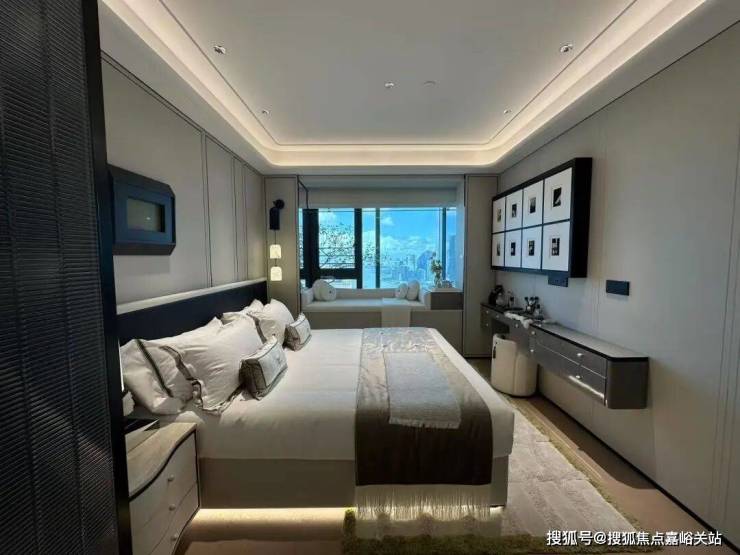值得一提,“ 270°视野 ”贯穿户型,主卧、北向次卧带270°飘窗,纵览城市景;厨房竟然也有转角窗,阳台也带转角,这户型简直为观景而生。