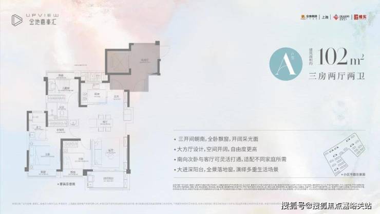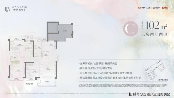 户型设计优秀:以建面约 89㎡三房两厅一卫为例,厨房配备岛台,三开间朝南,全卧飘窗设计,LDKB 餐客厨阳一体化贯通中轴,卫生间三段式干湿分离。建面约 102㎡三房两厅两卫户型,三开间朝南,主卧套房设计,主卧、北次卧 L 型飘窗设计,视野开阔,空间感和舒适度强。金地嘉峯荟售楼处电话:400-118-5086