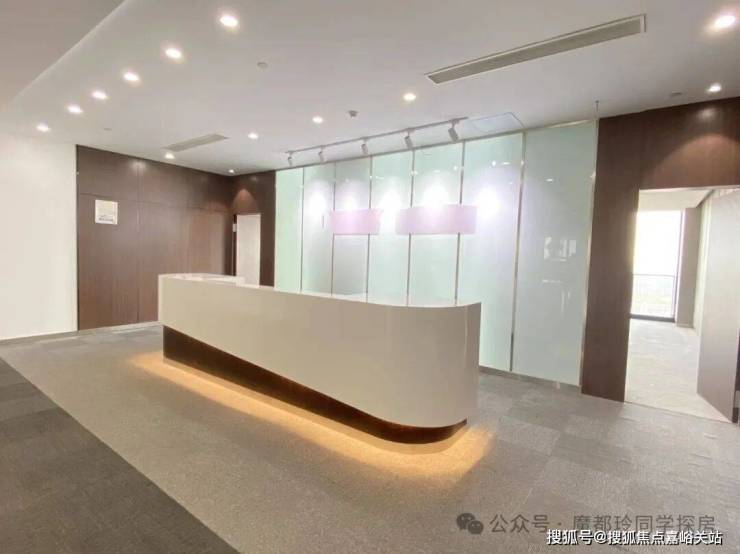 交付标准:铝板吊顶、格栅灯、架空地板、遮阳窗帘、部分定制装修、部分带租约