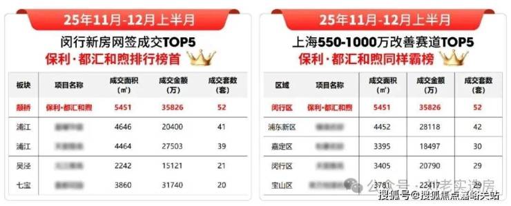 保利·都汇和煦当仁不让!自11月开盘以来,项目不仅强势 霸榜闵行区销售金额、成交面积、成交套数榜单,更在上海550-1000万级改善赛道中脱颖而出,问鼎25年11-12月上半月销售 三冠王,用硬核数据诠释何为“现象级热盘”。