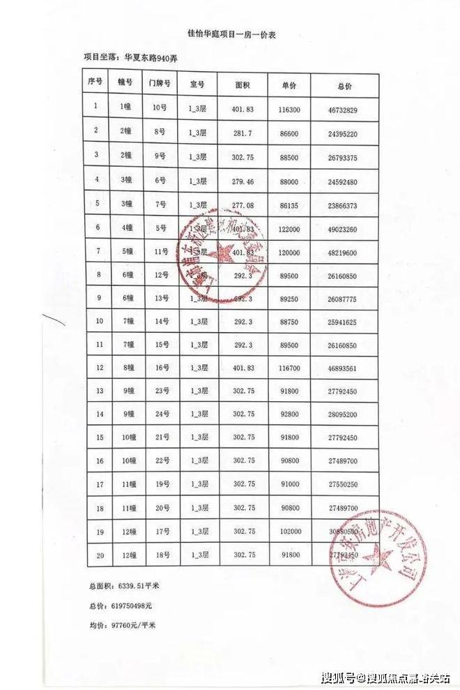项目一房一价表