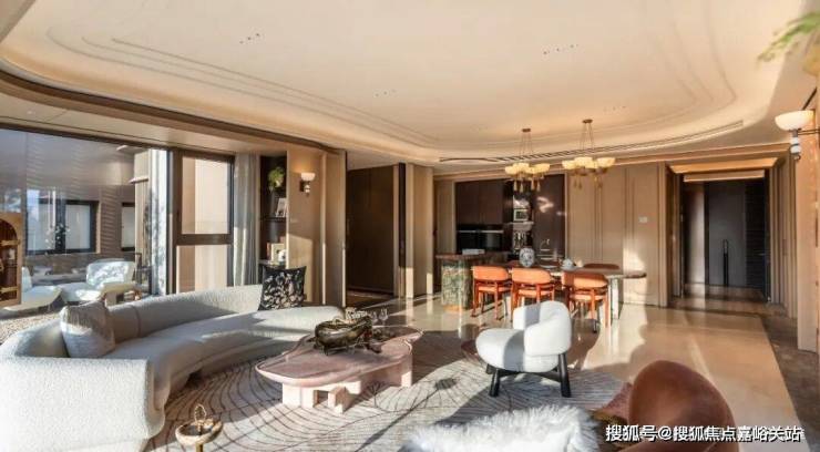 比如这个建面约238㎡户型,采用环幕设计,将徐汇滨江城市景观、下沉庭院等自然与人文景观尽收眼底,营造沉浸式居住体验。