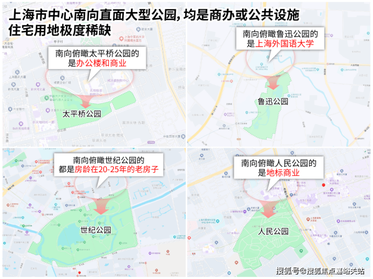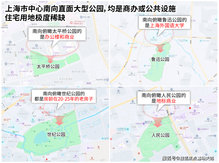 公园边界有限: 公园的周长是固定的,能真正“ 直面 ”公园(而非斜视、侧视、有遮挡)的土地面积极其有限