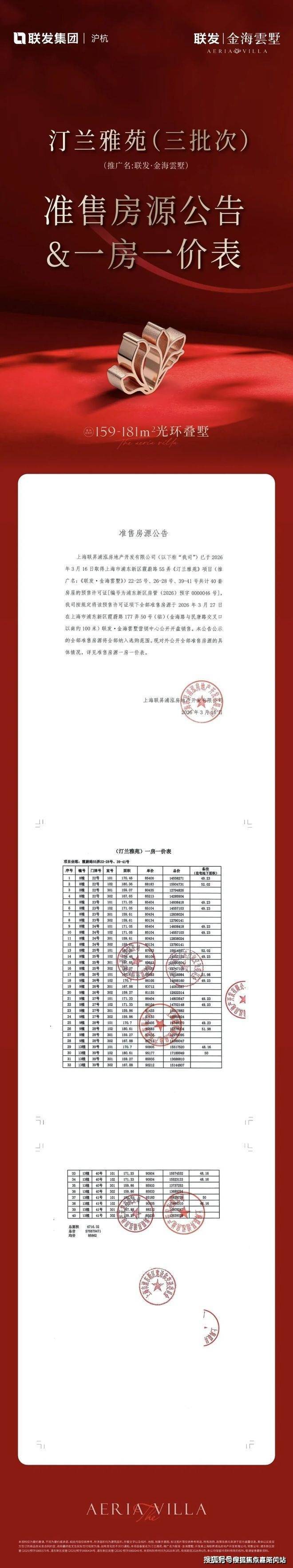 联发金海云墅 官方网站公示信息