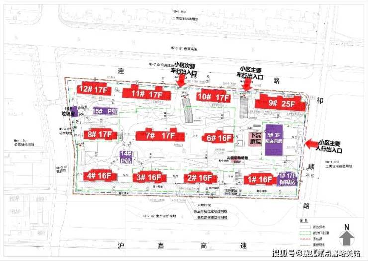 根据项目设计方案显示, 拟建11栋16-25层高层住宅。其中1号楼靠近17层的保障房,5号口为3层的配套用房,14#、15#为P站,16#为垃圾用房。