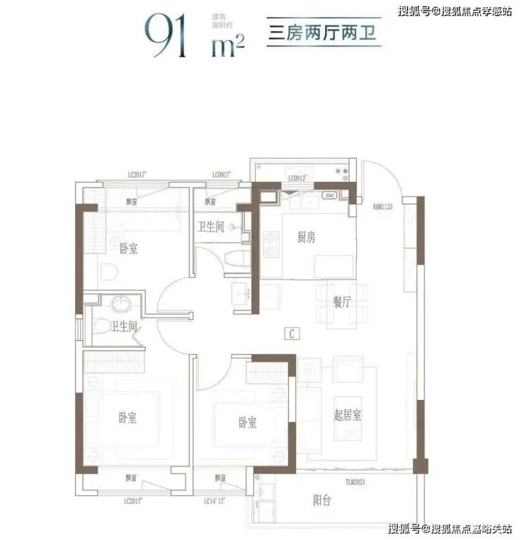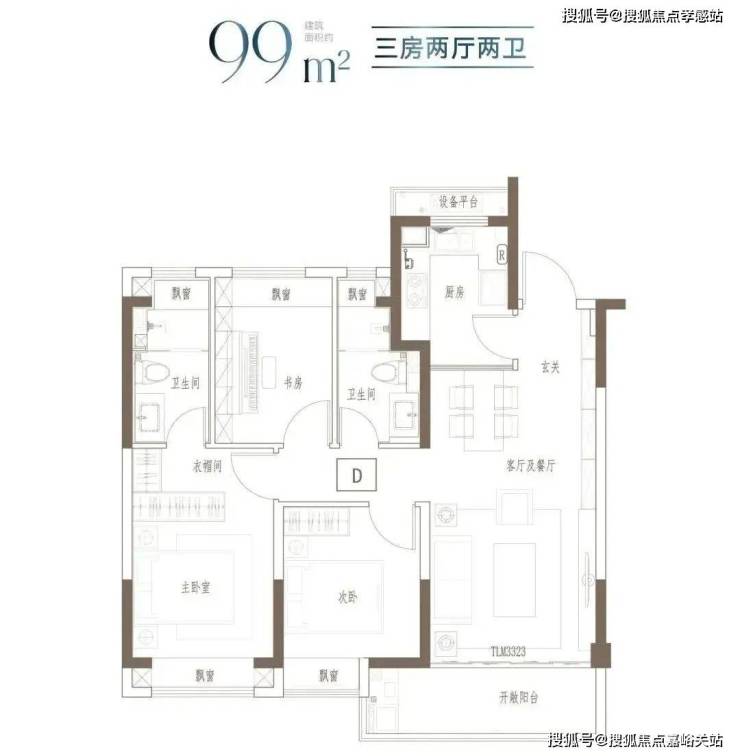 户型特点:3开间朝南,全屋阳光充足;L型厨房转角移门设计,最大化空间视野;四飘窗设计,通透空间享受;动静分区,亲密有度;套房式主卧,容纳私谧生活点滴;