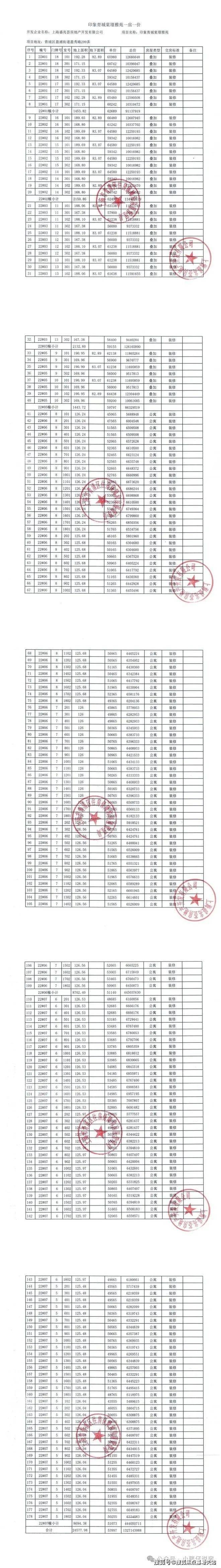 项目一房一价表如下