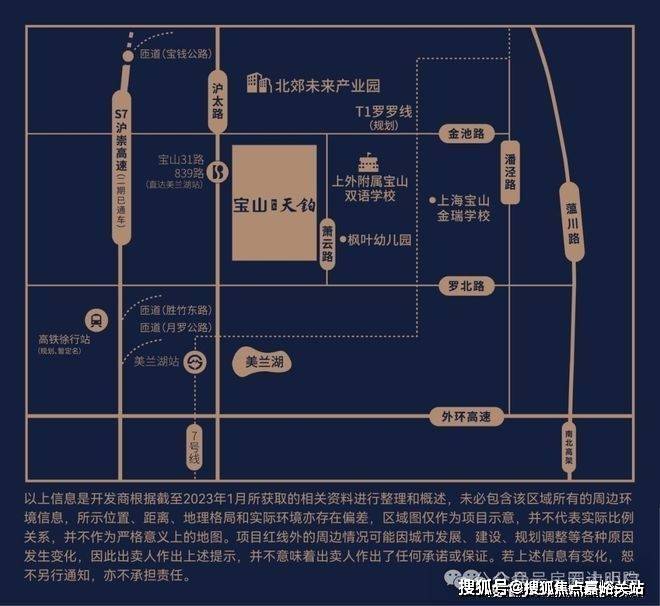 项目位于北郊未来产业园南面,东至萧云路,南至沪品路,西至沪太路,北至金池路。 自驾:项目紧邻沪太路,可接驳:月罗公路、蕰川路、宝钱公路、G1501、 S2 、S7 S20等上海主干道,可快速到达上海各商圈,尽享方便出行的悠享生活。