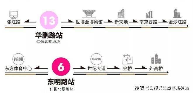交通方面:步行数百米可达的6号线和13号线,6号线东明路和13号线华鹏路(距离约800米),而项目正位于双轨交站点之间。