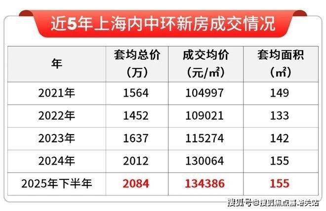具体看数据,截止今年下半年上海内中环新房的成交均价约13.4万/㎡,套均面积155㎡,套均总价高达2084万!