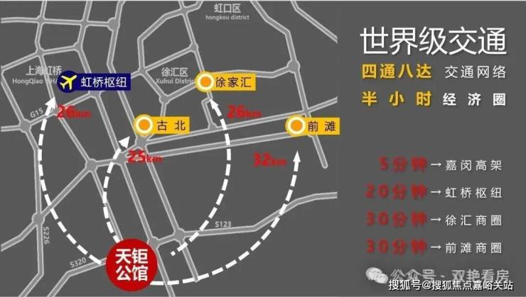 🔘交通配套 地面:5分钟可上嘉闵高架、20分钟直达虹桥交通枢纽、30分钟可达徐汇和前滩太古里商圈