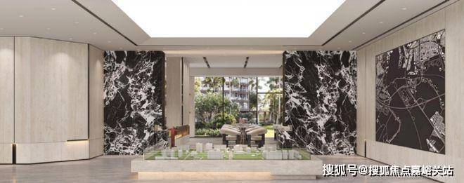 售楼处设计源自伦敦与上海半岛酒店的优雅复古,将现代极简主义美学运用到极致。沙盘区景墙将取材Celine御用石材宝格丽黑大理石,以永不过时的摩登气息,点睛空间的奢华精致。