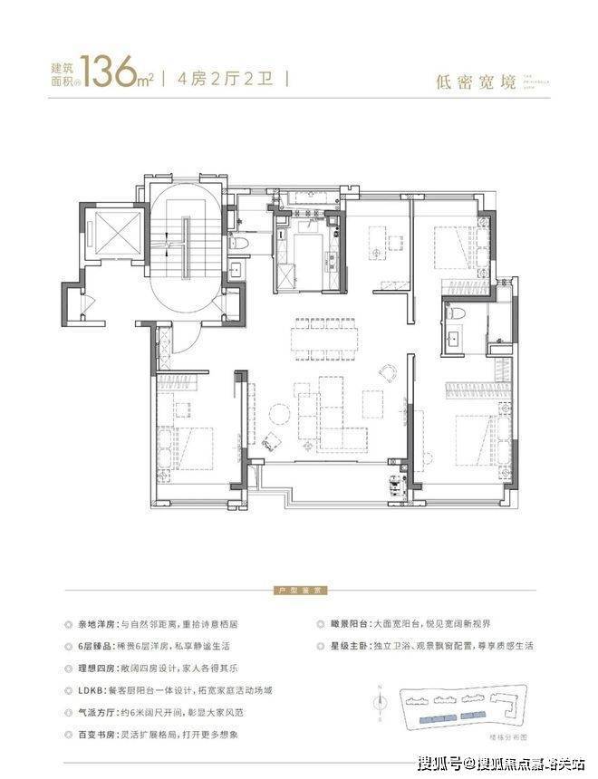 建面约136㎡6层洋房纯粹的亲地性和高得房率,既能满足三代同堂居住需求,也能保障私密性和居住体验感的提升;