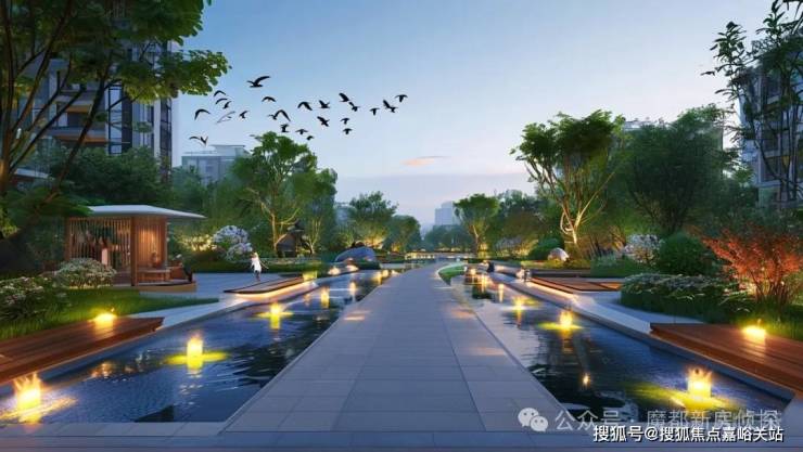 四大主题园区各具特色:飞鸟园适合晨跑健身,夏花园是亲子互动乐园,流云庭营造禅意休憩空间,流萤园则成为夜间浪漫打卡点。这种“公园里的家”的设计理念,让业主每天归家都像在逛景区。