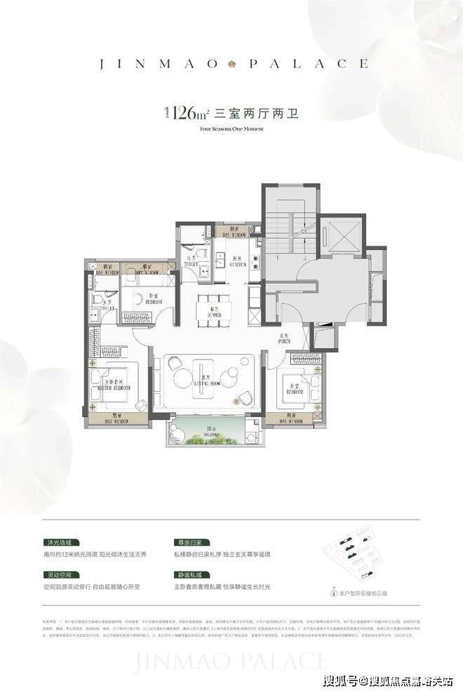 ● 建面约126㎡横厅3房:一步到位顶奢3房,全杨浦没有竞品。