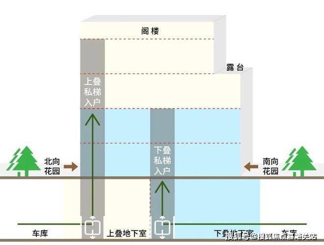第三、上叠北向花园入户,下叠南向花园入户,这种错开让上下叠都具备了有天有地独门独院的私享体验,这也是其他叠墅很难享有的。