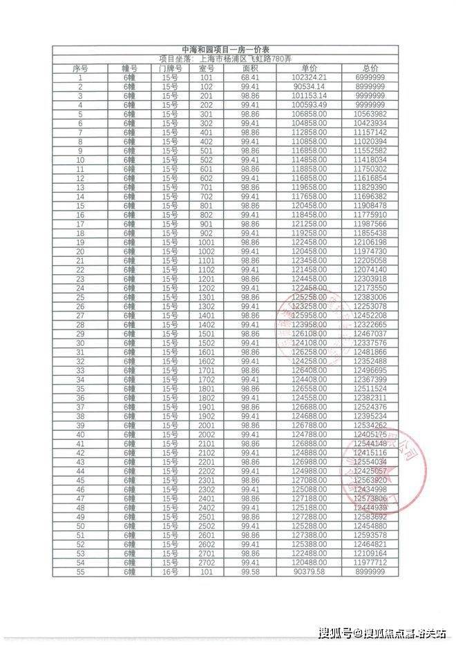中海海上和集一房一价表