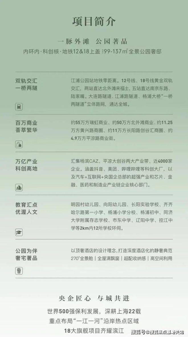 保利外滩启Park77售楼处电话4008569058☑️☑️保利外滩启PARK77,是大连路总部集群、长阳创谷、杨浦滨江产业带这三大产业共同的芯,凭借极近距离和优越区位,成为三大产业区人才居住优选之地,也是项目未来价值保障。保利外滩启Park77售楼处电话4008569058☑️☑️