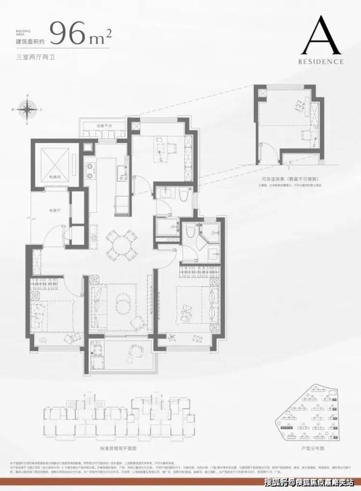 建面约96㎡3房2厅2卫
