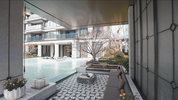 而西派海上不仅做了水景,更是颠覆传统,打造了一个极具审美力的约450㎡马赛克无边水景,搭配下沉式卡座,“在家就是度假”,天天酒店式享受。