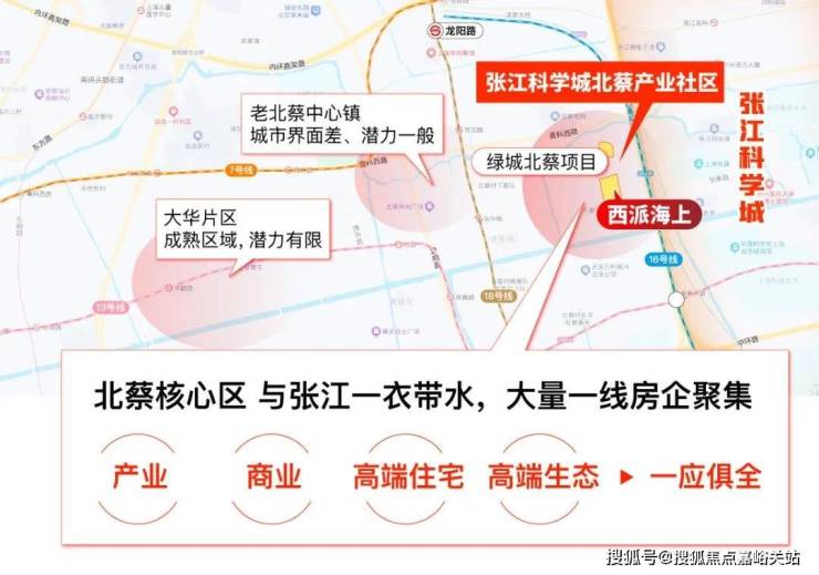 距离张江仅一线之隔,并且拥有大量的产业、住宅、教育以及生态用地,城市界面、潜力值都远远高于北蔡的其他区域。