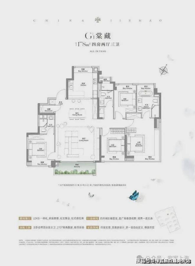 全景舱艺境美宅,标准层约3.1米层高、270度全景飘窗、LDKB一体化、南向跑道阳台、超12米南向全屏开间,无限视野尽收眼底,还有超金喜的满配精装,全上海只有央企金茂才能做得到。