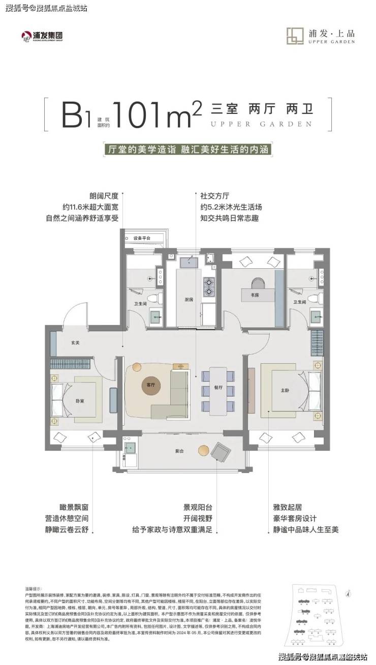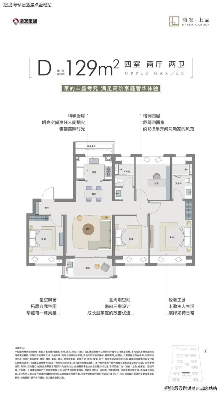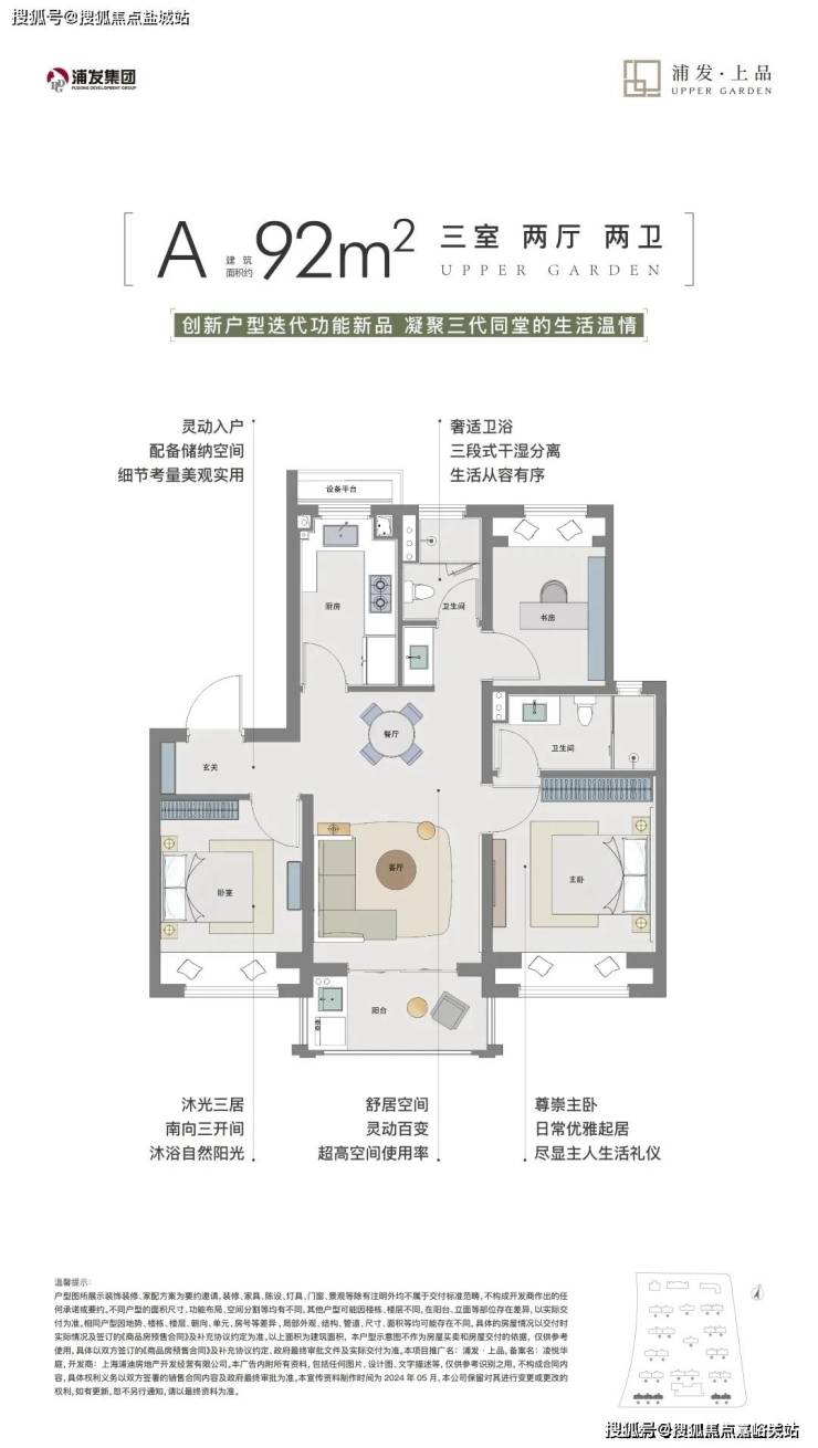 浦发上品目前在售建面约92-101-129㎡3-4房,4种全功能户型.