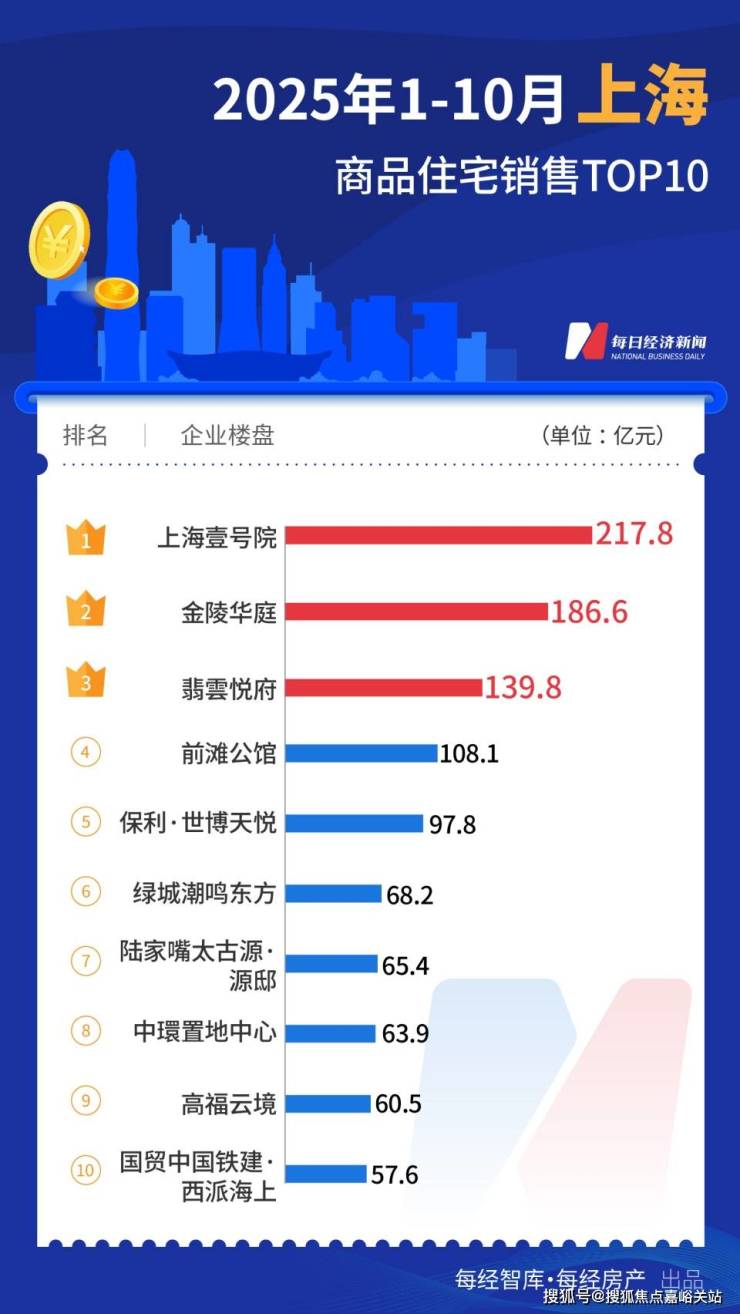 值得注意的是,全部位于上海的4个“百亿大盘”——“上海壹号院”“金陵华庭”“翡云悦府”和“前滩公馆”仍然保持强劲销售势头,10个月累计销售额分别达到217.8亿元、186.6亿元、139.8亿元和108.1亿元;与前9个月相比,金陵华庭单月销售额超50亿元,翡云悦府超17亿元。