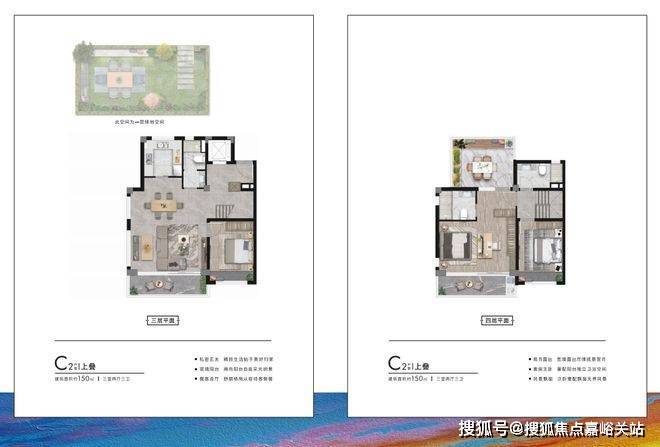 建面约150㎡3-4房 这个面积段的叠加空间更加富裕,空间打造上也更加灵动。主卧带观景阳台的设计,让四季景观尽收眼底。