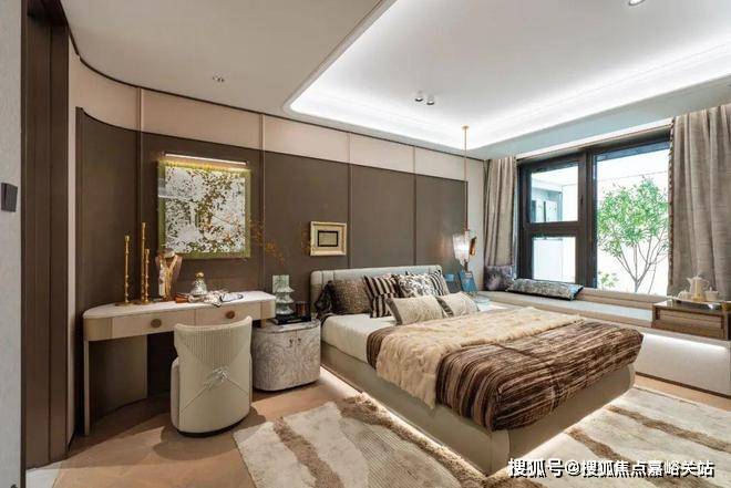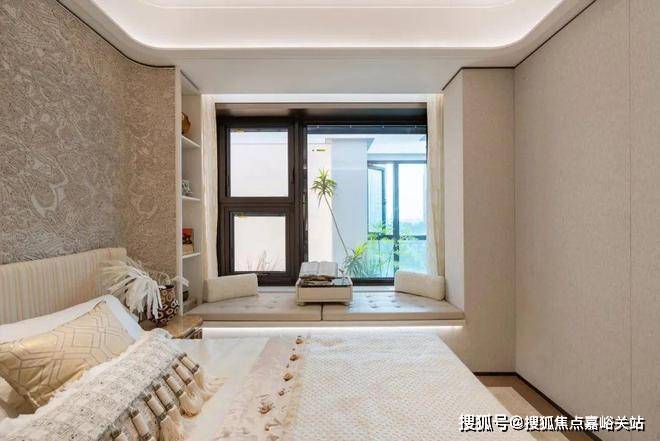 豪华的套房设计,北侧卫浴飘窗+南向床边双飘窗的设计,更是把这个空间的视野和收纳空间延展开来,尺度感真的很惊人。宝山淞南 中环之上