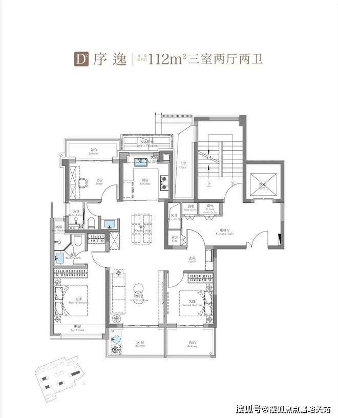 建面约114㎡3房2卫户型