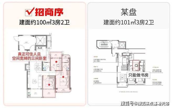 这是百平米3房那么多年一直无法解决的通病,但招商序的百平米3房却截然不同,TA凭借着3阳台的设计,给到客户一个真正的三房户型: