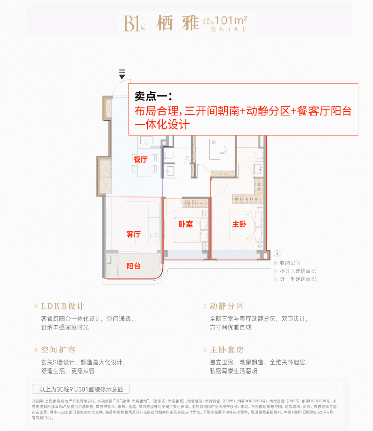 其三,北地块建面约101㎡3房产品具备划时代的创新意义。