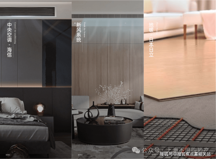 标配中央空空调和地暖、新风系统、地暖三大件(日历或同等品牌),德国高仪等卫浴品牌/德国旭格门窗系统/美国耶鲁门锁/比利时德高地板/西门子等电器品牌(电磁炉、油烟机、洗衣机、冰箱、烘烤一体机等)