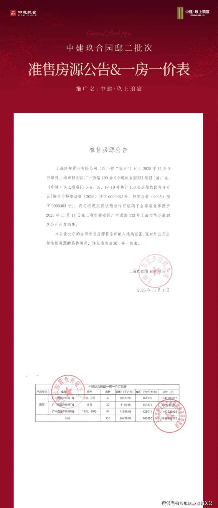 静安大宁「中建·玖上琅宸」二批次加推1#、7#、8#幢,建面约128-410㎡当代公园地标作品,过会均价146850元/㎡;建面约128㎡单价仅12.8万/㎡,11月5日开启认购!