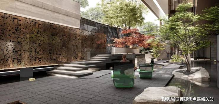 社区景观方面,项目以 "富林风华,十景多花园"为核心理念,通过现代设计语言重构《富林十景》的山水意象,将 "山、水、茶、酒、舟、市" 等江南文化符号有机融入空间序列营造 "一步一景,移步异景" 的沉浸式归家体验。
