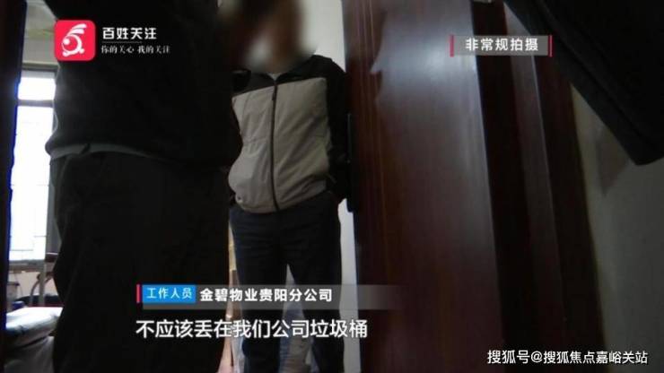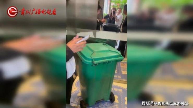 金碧物业贵阳分公司 工作人员:不是垃圾堵在门口,是他们家丢的垃圾,不应该丢在我们公司垃圾桶。