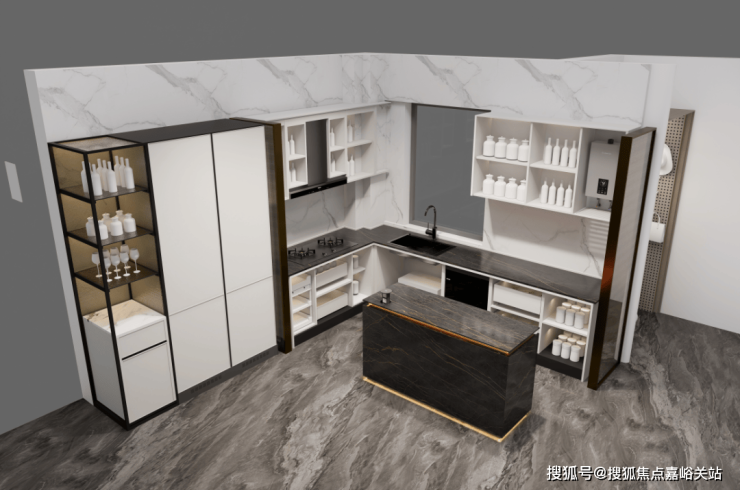 约143平户型,厨房岛台和上柜都不稀奇,厨房外的半开放式餐边柜和利勃海尔内嵌式同样也作为交付标准附赠,柜体额外提供接近1立方面积的收纳空间: 中建壹品外滩源著售楼处电话:400 - 8894 - 986😽😽